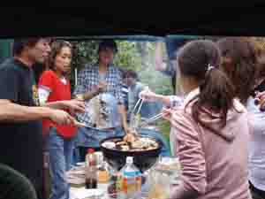 バーベの主役 肉に群がる参加者 w