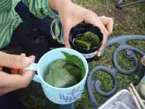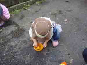 一心不乱に野菜?(草)を洗う少女